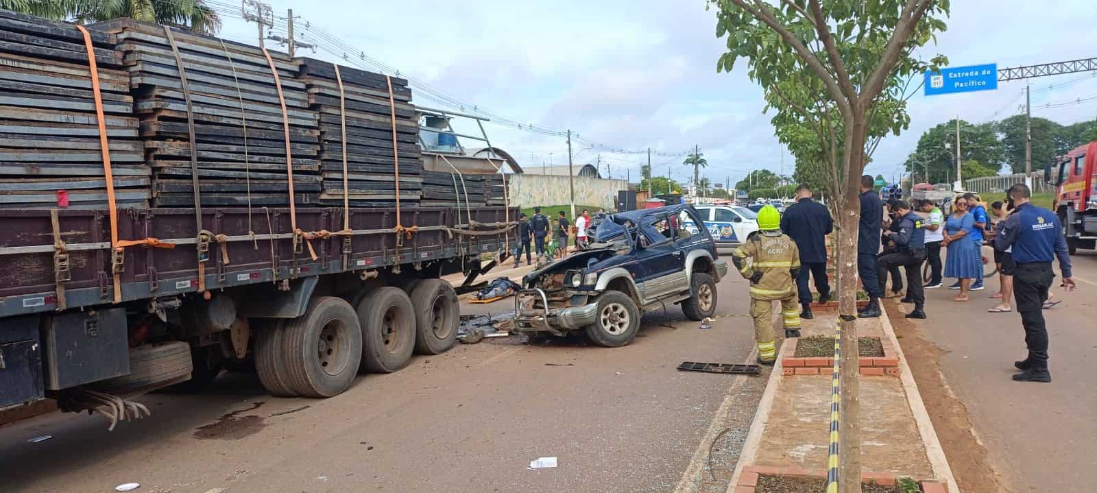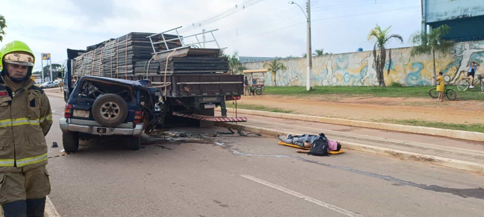 Um grave acidente de trânsito foi registrado na manhã desta terça-feira (14) em Epitaciolândia, no interior do Acre. Um carro com placa boliviana colidiu violentamente na traseira de uma carreta estacionada em frente ao estádio municipal. O impacto, que ocorreu por volta das 7h, resultou na morte de um homem e deixou outras pessoas feridas.