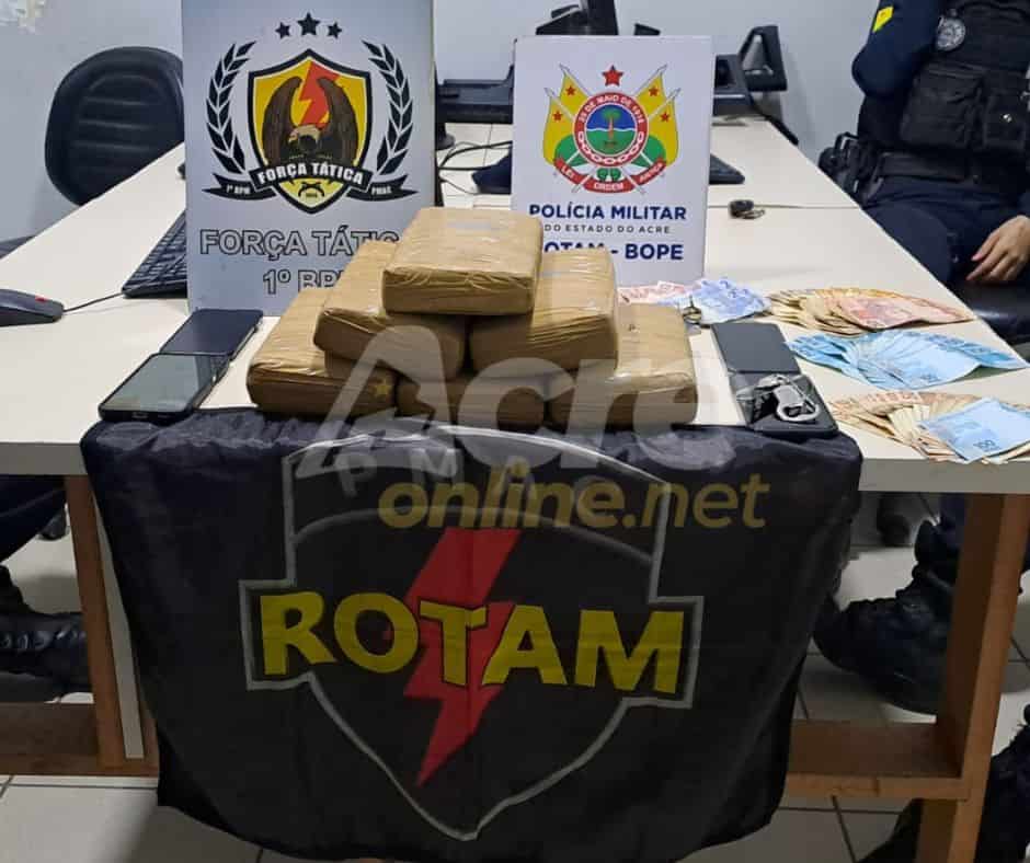 Força Tática e ROTAM prende acusados com seis tijolos de maconha em Rio Branco