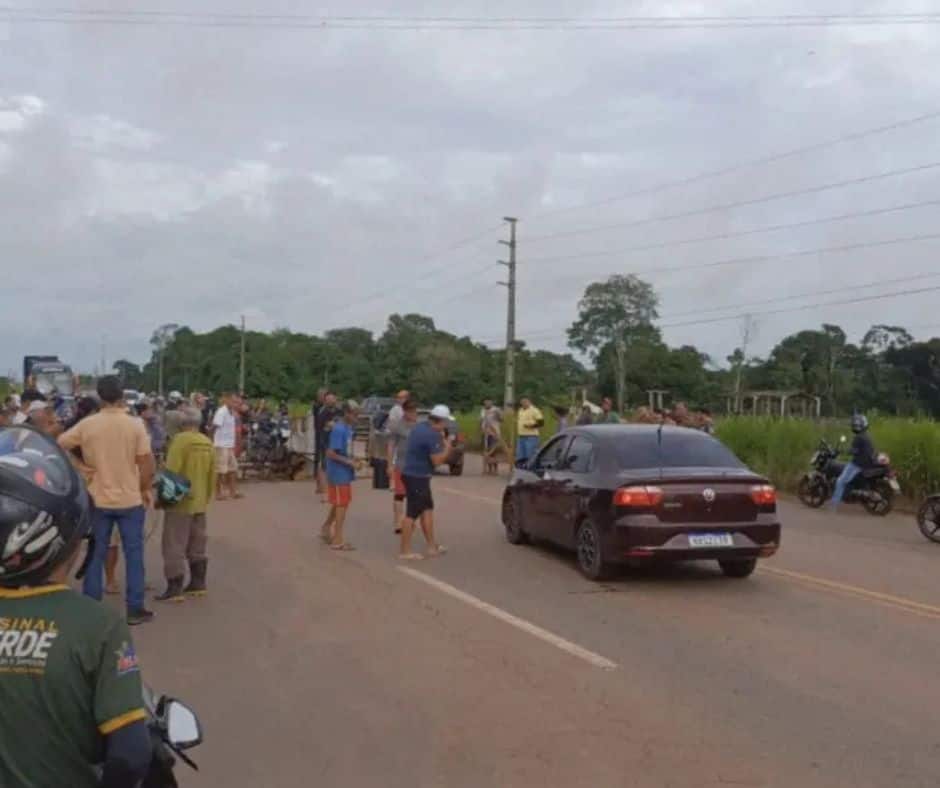 O grupo interditou a rodovia nos dois sentidos, impedindo o fluxo de veículos próximo ao posto da Polícia Rodoviária Federal (PRF). Policiais rodoviários acompanham o ato e orientam motoristas que chegaram a enfrentar congestionamento na área.