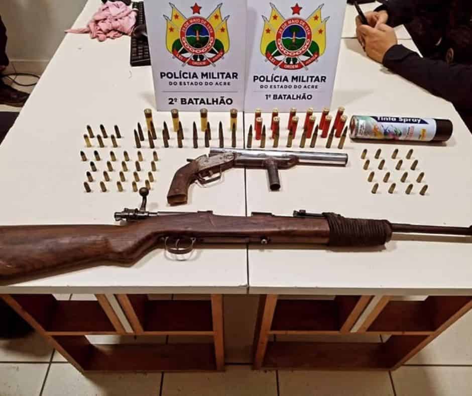 A Polícia Militar do Acre apreendeu um arsenal de armas  durante uma operação no bairro Belo Jardim II, em Rio Branco. A ação foi conduzida pelo Grupamento Tático do 2º BPM após denúncias anônimas que apontavam que criminosos estariam escondendo armamento pesado em apartamentos da Rua 13 de Maio, região marcada por recentes confrontos entre facções.