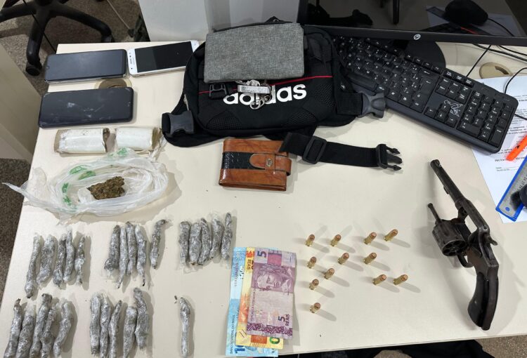Após a abordagem, o suspeito confessou manter entorpecentes em casa. No imóvel, foram encontradas 27 porções de maconha prontas para venda, além de munições, dinheiro em espécie e um celular. O material reforçou os indícios de tráfico de drogas e porte ilegal de arma de fogo.