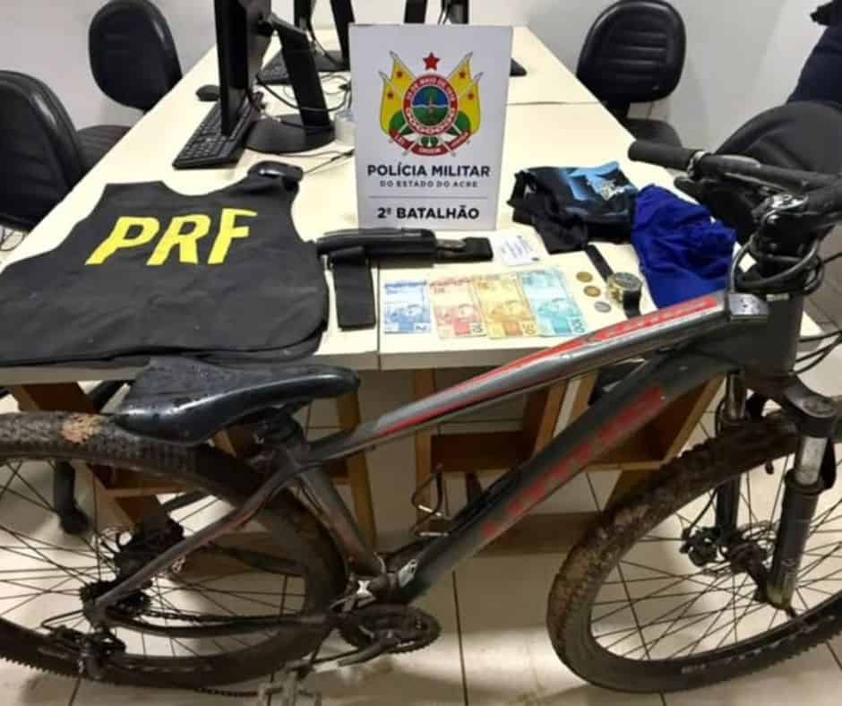 Durante as diligências, os militares também recuperaram uma bicicleta da marca Lotus, que havia sido roubada na noite anterior. Com os menores foram apreendidos uma capa de colete balístico com identificação da PRF, R$ 163 em dinheiro, um coldre de perna, um relógio e roupas supostamente usadas nos crimes. Outros dois envolvidos conseguiram fugir.