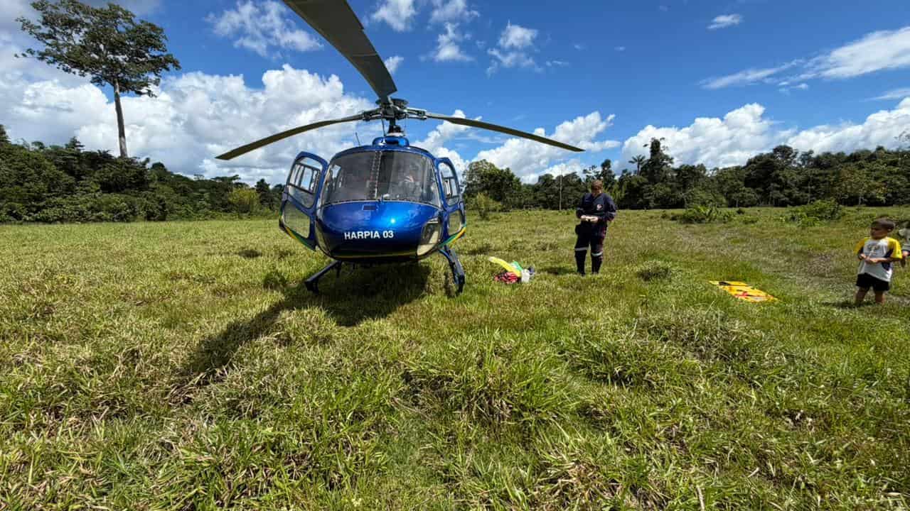 A equipe médica realizou os primeiros atendimentos ainda na comunidade e, em seguida, o paciente foi transportado de helicóptero até Cruzeiro do Sul. De lá, ele foi encaminhado ao Hospital do Juruá.