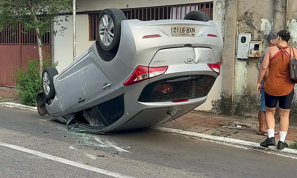 Na tarde desta segunda-feira (4) carro capota após colidir com outro veículo na Vila Ivonete, em Rio Branco. Segundo informações a condutora do carro na cor...