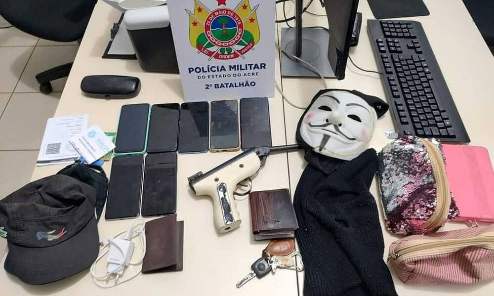 Militares do Segundo Batalhão (2° BPM) prenderam três homens, uma mulher e apreenderam um adolescente que realizaram um sequestro relâmpago e roubos em Rio Branco, na...