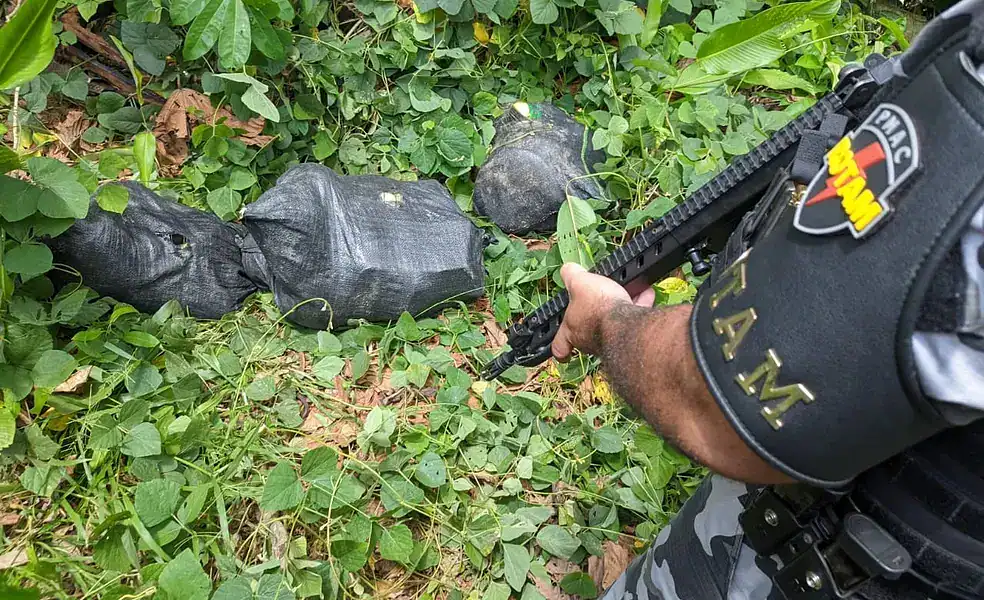 Após denúncia, a Polícia Militar apreendeu mais de 63 quilos de drogas
