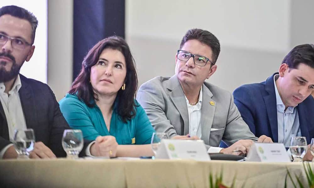 Durante o encontro Rotas de Integração Sul-Americana, realizado pelo governo do Acre na última terça-feira, 9, a ministra do Planejamento e Orçamento, Simone Tebet, ao lado...