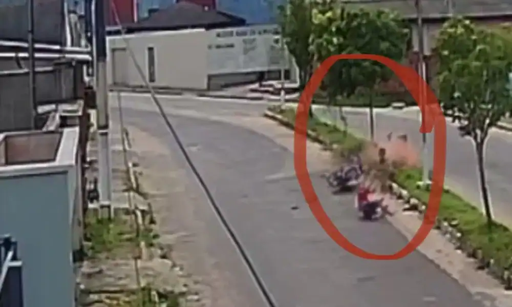 Imagens registradas por uma câmera de segurança mostram o momento em que o motociclista perde o controle da moto e se choca violentamente contra a caixa...