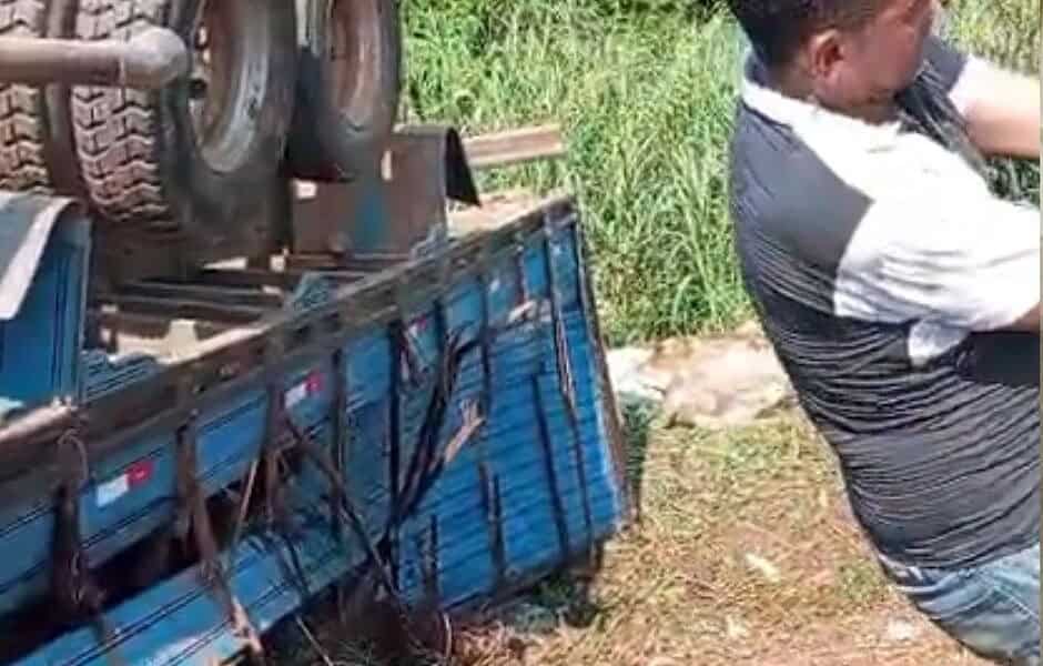 Um vídeo que circula nas redes sociais mostra um caminhão boiadeiro tombado às margens da BR-364, na região do Caipora, em Sena Madureira. Segundo informações, o...