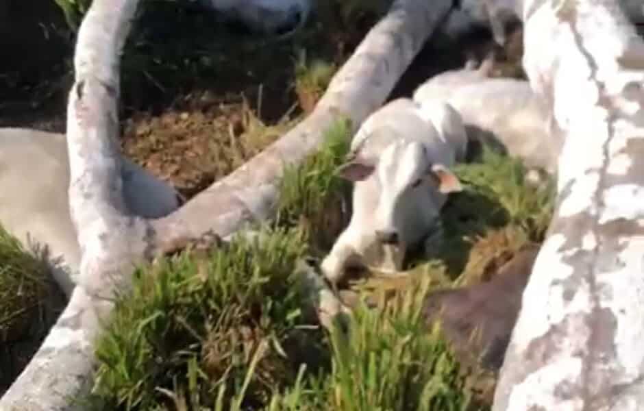 Um vídeo que circula em grupos de WhatsApp mostra a cena impressionante de 18 bois mortos após a queda de uma árvore em uma fazenda localizada...