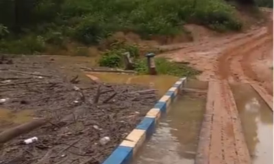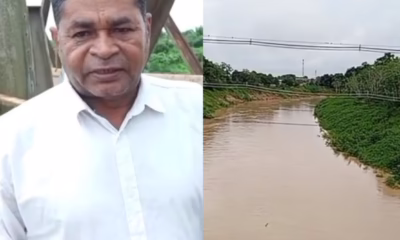 A ponte de madeira que dá acesso à Comunidade Boca do Caeté, em Sena Madureira, está sob risco de ser levada pela força das águas do...