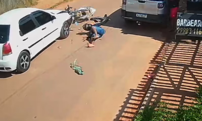 Imagens de um sistema de segurança registraram o exato momento em que o idoso Francisco das Chagas de Souza, de 62 anos, foi atropelado e ficou...