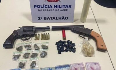 Um homem foi preso pela Polícia Militar em posse de duas armas de fogo e drogas de vários tipos, na Rua 12 de julho, Beco Cristo...