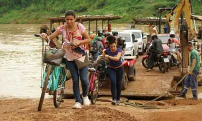 Moradores da Sibéria saindo da balsa, após travessia. Foto: Cleiton Lopes/Secom Com a parceria do Departamento de Estradas de Rodagem do Acre (Deracre) e do Consórcio...