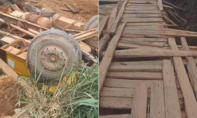 Um caminhão tombou quando