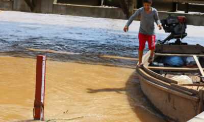 A medição é realizada a cada 3 horas pela Defesa Civil O Rio Acre segue baixando na capital acreana, de acordo com a medição das 12...
