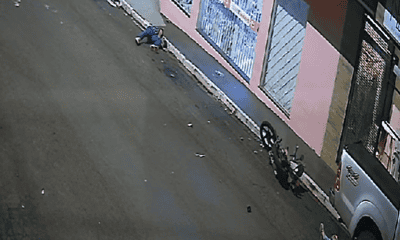 As duas vítimas estavam em uma motocicleta quando foram atingidos por um carro modelo Corolla Uma câmera de segurança flagrou o momento em que um casal...