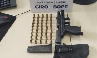 Uma equipe da Companhia Giro, do Batalhão de Operações Especiais (Bope) da PMAC, prendeu um homem armado com uma pistola e 45 munições, na manhã deste...