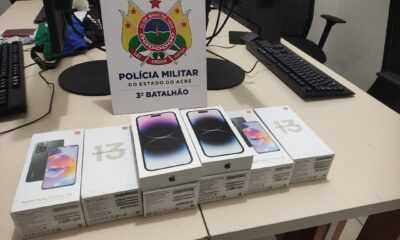 Policiais militares recuperam aparelhos celulares roubados em uma loja situada no bairro Bosque, na tarde de terça-feira, 12. Os militares tiveram informações do roubo, das características...