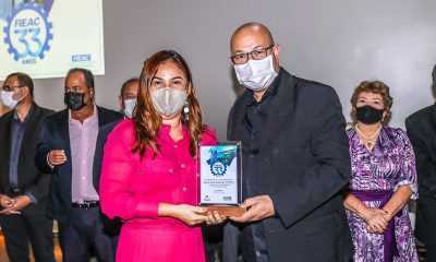 Desembargadora-presidente Waldirene Cordeiro recebeu a homenagem das mãos do presidente da entidade